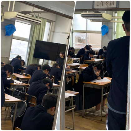 1年生と2年生は、今日から学年末テストがスタートしました。1年生しか様子をみる時間がありませんでしたが、一年間の総仕上げということもあり、いつも以上に気合いが入っているようでした。