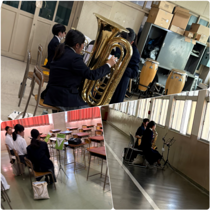 朝は雨が激しく降ったため、各部、工夫をしながら取り組んでいました。吹奏楽部も教室だけでなく廊下を使って練習していたので、いろいろな声、音が響き渡っていました。
