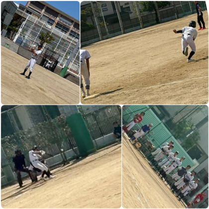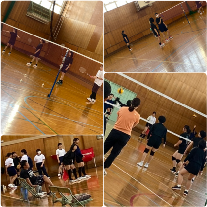 風が心地よくも感じる晴天の中、本校では、野球部、バトミントン部、バレーボール部が練習、練習試合をしていました。相手校が近隣の学校だったこともあり、観に来られた保護者の方がたくさんおられました。