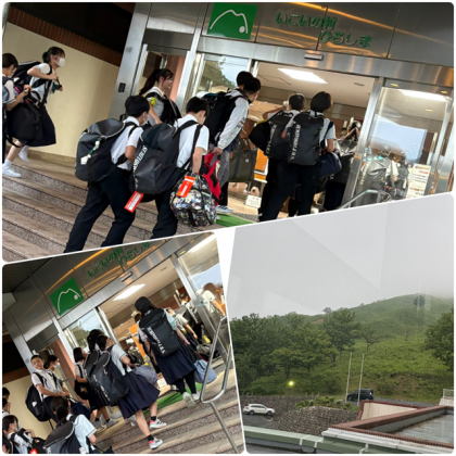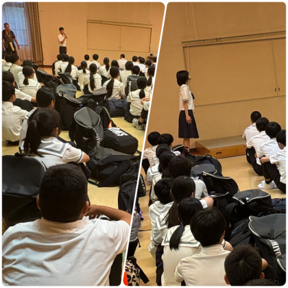 入所式は館内で行い、代表のあいさつは丁寧で立派でした。宿舎に着いて安心したこともあり、皆さん元気そうです。