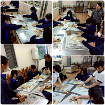 お箸やスプーンなど、実用的なものができあがれば記念にもなりますね。カンナを使って懸命に削っています。