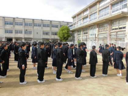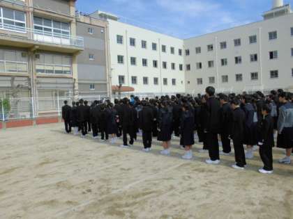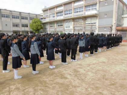 少し肌寒い中、全校生徒が