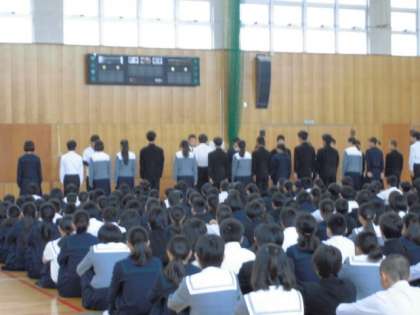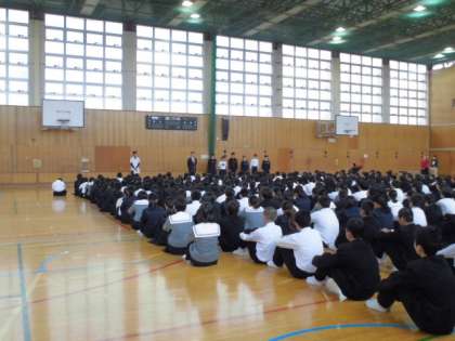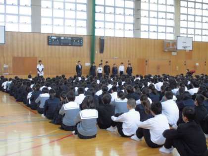 本日は、朝の全校集会形式で
