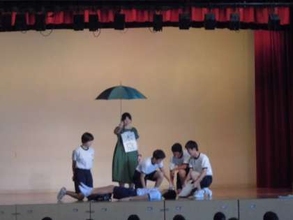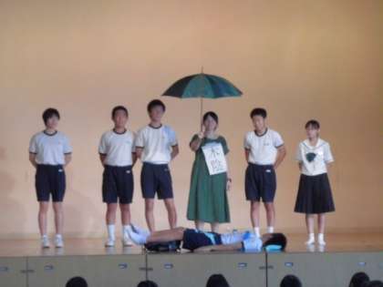 熱中症の処置をわかりやすく演じました。