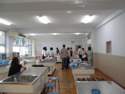 調理室で、チジミの調理と試食会です。
