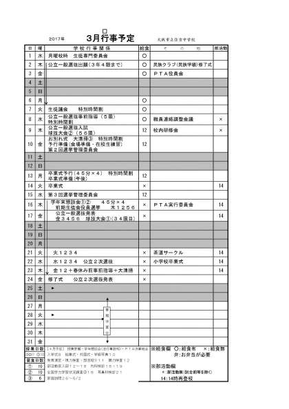 3月行事予定表