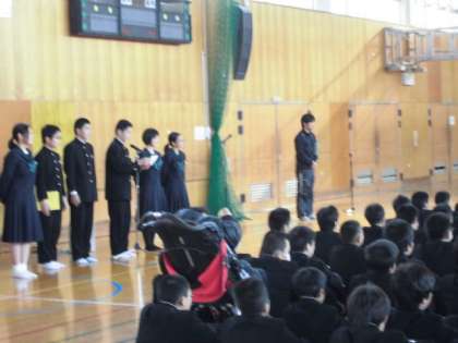 卒業式には、会場の都合もあり代表生徒しか