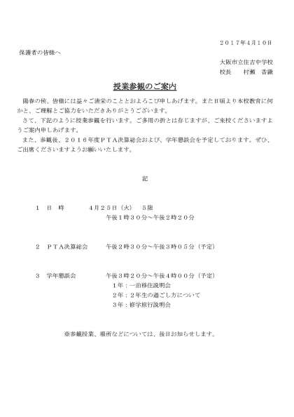 授業参観のご案内(4月)