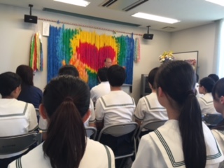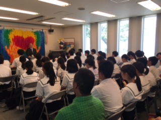 講話のようすです。回天記念館の松本紀是館長よりお話をいただきました。