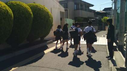 おはようございます。1年生の一泊移住がスタートしました。1年生は、大阪府岬町にあります大阪府立青少年海洋センターへ向かいます。学校から班ごとに電車に乗って現地まで行きます。