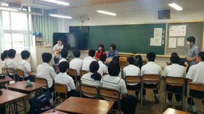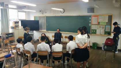 福祉学習2日目です。まずゲストの方々をグループごとに各教室へ案内し、事前介助学習をしていただきました。