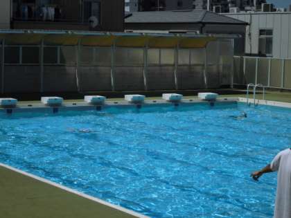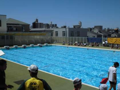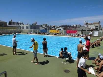 プールで開会式を行い