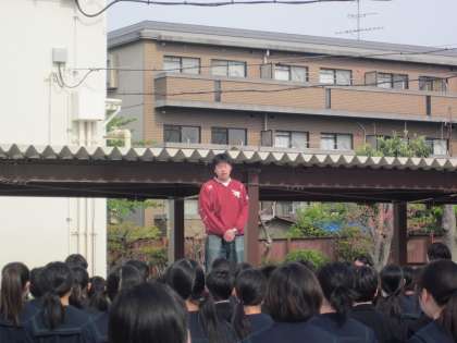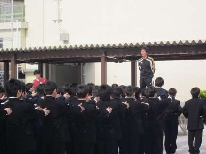 最初に学年世話役の田中先生から、