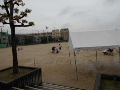 昨夜からの雨のため、10時開催に向けて