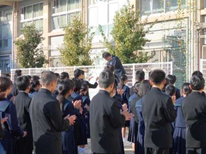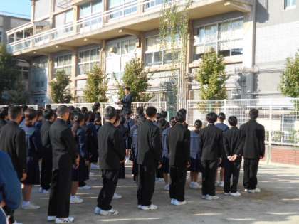朝のあいさつの後、