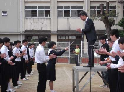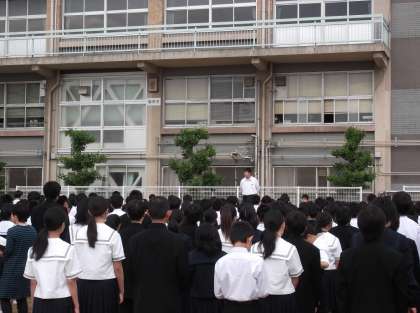 朝のあいさつから始まり、最初は、校長先生のお話しです。