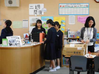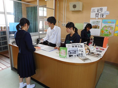 5月10日(木)昼、毎週火・木曜日は、学校図書館補助員の方が来校され、図書館開放の補助や読書活動を進める魅力ある学校図書館づくりに取り組んでいただいています。昼休みには、図書委員を含め15名が来館しました。お気に入りの一冊を探す生徒、本を借りる・返却する生徒など、思い思いの時間を過ごしました。昼休み・放課後、積極的に図書館を利用しましょう。