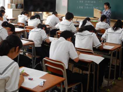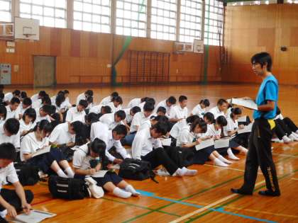 5月18日(金)、中間テストの最終日。2年生のみ3時間目に音楽のテストがありました。3年生は、早速、体育館に集合し、来週の修学旅行に向けてしおりの説明や係会議に取り組んでいます。再登校後の部活動では、テストからの開放感もあり、熱心に練習に取り組み汗を流す姿がありました。