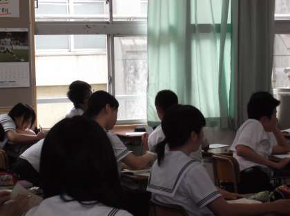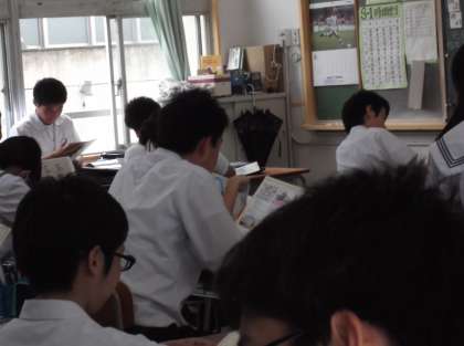 3年生は、教室で中間テストのテスト反省と