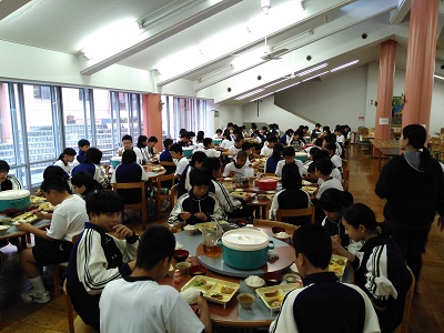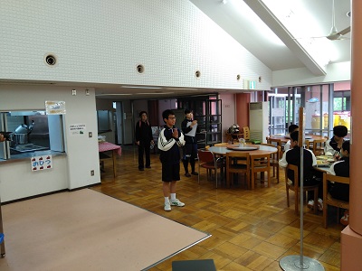 6月7日(木)、班単位で食堂に集合します。全体がそろい「いただきます」のあいさつで朝食の開始。今日の活動に備えてみんなしっかり食べています。みんなと食べる食事は進みます。「ごちそうさま」の後は、食器をまとめて返却。最終日、みんなで頑張っていきましょう。