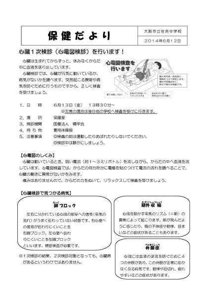 心臓1次 心臓1次 検診 (心電図検診) のお知らせ