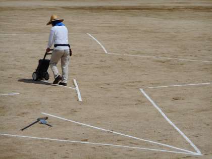 6月27日(水)、今日で3日間の期末テスト終了。終了後、「70周年を祝う会」の準備で航空写真を撮影しました。前日、石灰で描いた校章の下絵(写真左・中央)に色画用紙を持って並びます。子どもたちの配列が終了すると飛行機到着。数回、旋回しながら上空から撮影しました。