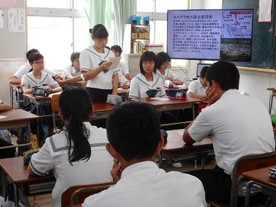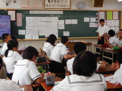 6月29日(金)4限、3年2組社会科の授業。「主体的・対話的で深い学び」についての公開授業は今年度2回目。本時の目標は『平和な国際社会を築くために「原爆投下」という事実を、世界へどのように伝えていけばよいのだろうか』。2019年度にアメリカで開催を検討していた『原爆展』が中止になったことを学習課題とし、授業を進めていきます。自分の意見を発表し、仲間の意見を聴き、新たな気づきが次への問いにつながる広がりのある学習となりました。