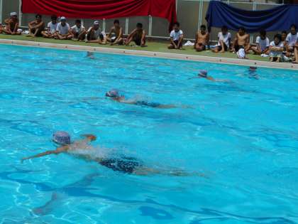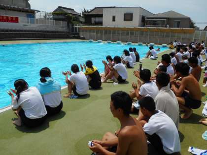 7月13日(金)3.4限、プールの水面を照りつける陽ざしがまぶしく感じる中、3年生にとっては最後の「水泳大会」の開始。司会・運営は体育委員会。子どもたちは、仲間の大きな声援を後押しに、個人種目やリレー種目に完全燃焼。優勝クラス3年3組は歓喜の渦に包まれていました。