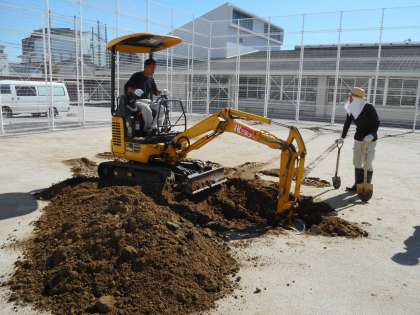 9月3日(月)、まだまだ暑い日が続いています。校舎等の老朽化が進み、上グランドの水道管が破損し工事中。これまでの地震や台風の影響により、体育館の外壁が剥離したり、正門横の防球ネットに大きな裂け目ができています。緊急補修工事を予定していますが、接近する台風21号の影響が心配です。