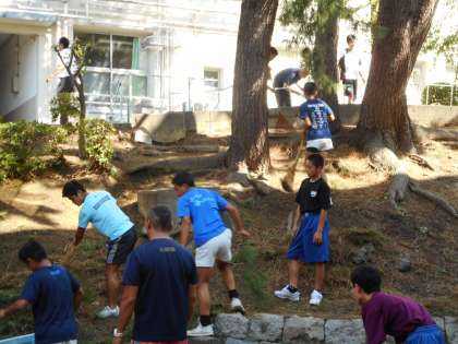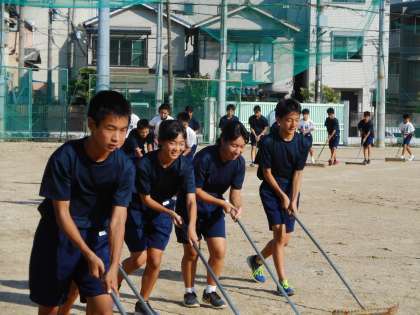 9月5日(水)、4限下校のため、部活動の生徒は午後2時30分再登校。台風で飛び散った樹木の枝や葉、プラスチック片、紙くずなどを、校舎内外を分担して清掃しました。皆さん一生懸命に取り組み、最後はグランドのゴミ拾いと整地をして終了。ボランティアの心が、学校を美しくしました 。ありがとうございました。