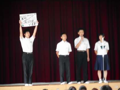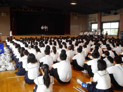 9月7日(金)、今週は、台風の影響で「臨時休業」「4時間授業」「弁当持参」と対応に追われ日々でした。今日から普段の学校生活が戻ってきました。登校後は、講堂で「生徒会集会」が行われ、各専門委員会から9月の目標や具体的な取り組み内容が報告されました。放課後は文化祭の取り組みが急ピッチで進められています。文化祭は9月21日(金)です。
