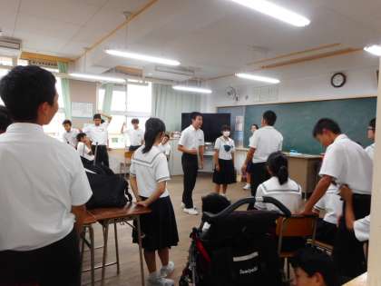 9月13日(木)、「電話の不具合について」の続報です。業者が点検した結果、2回線しかつながらない不具合が判明しました。電話回線の補修業者は台風の関係で立て込んでおり、10月上旬頃まで今の状態が続く見込みです。例えば、朝など回線が込み合う時は、電話がつながりにくくなる場合があります。しばらくしてからおかけ直しください。よろしくお願いいたします。【写真】今日の授業風景(左・中央) 文化祭の取組(右)