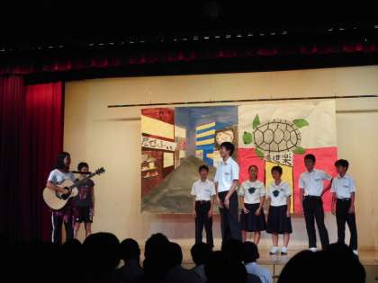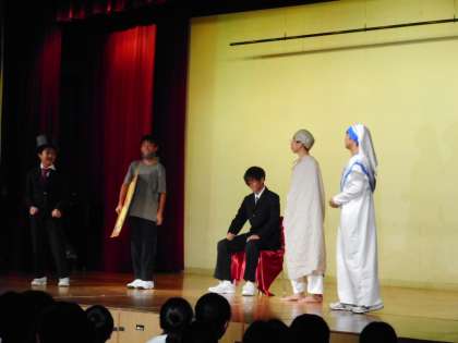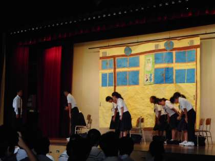 9月21日(金)、2年生の舞台発表はクラス単位の劇。2年1組は「夢に向かって 〜自分の花を咲かせよう〜」。ナレーションで上手につなぎ、夢の実現の大切さが伝わる劇でした。 2年2組は「青春 〜夢を持って努力せよ〜」。過去に戻る構成が興味深く、夢の実現に向けて、努力の必要性が伝わってきました。 2年3組は「Only one life 〜あなたはどう生きるか〜」。音響や照明が効果的に使われ、劇の展開にワクワク感がありました。生きることの意味をアピールできる劇でした。