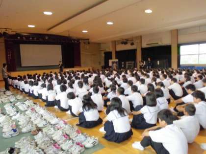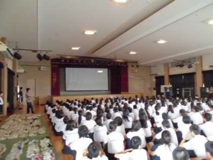 1限目 全学年 熱中症講座 養護教諭 講堂