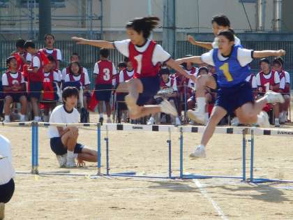 10月18日(木)、ラジオ体操終了後、競技開始となりました。60mハードル走、60m走、100m走では、赤・青・黄団対抗で、力強い走りが見られました。変わり種レースでは、跳び箱を飛ぶなど、変化に富んだコースをいかにくぐり抜けるかが勝敗の鍵となっていました。個人種目では、力走が光りました。
