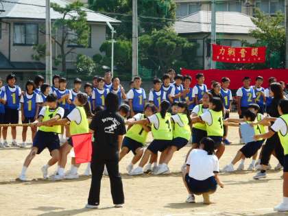 10月18日(木)、 200m走、1000m走は、スピードはもちろんですが、スタミナが要求されるレースです。応援席前を選手が走ると「頑張れ!」と熱い声援がかけられていました。バラエティ種目は、団対抗の綱引き。各団の総当たりで順位が決まります。力強さがみなぎる姿に大きな拍手が送られていました。激走が光る個人種目でした。