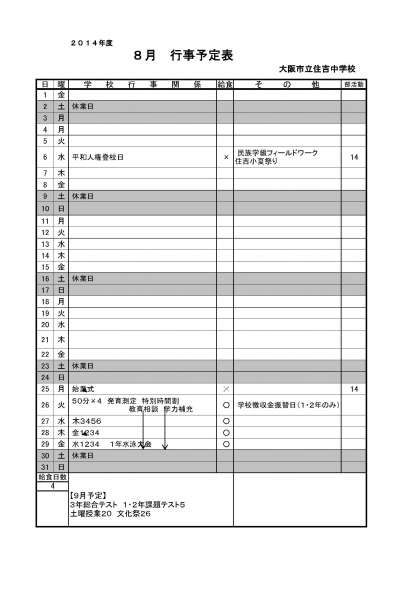 8月行事予定表