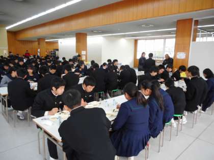 1月10日(木)、今日の給食は「正月の行事献立」。れんこんのちらしずし、ぞう煮、ごまめ、牛乳です。「ごまめ」は、まめ(健康)に暮らせるようにという願いが、「れんこん」は穴が開いていることから、「見通しの明るい1年」をという願いが込められています。学校給食は、旬の素材や伝統行事に関係する献立が盛り込まれています。