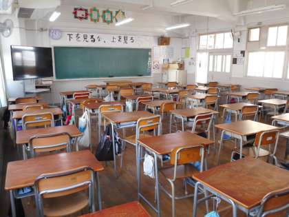 2月5日(火)、1年3組は、今日から明日2月6日(水)まで2日間学級休業です。教室は静まりかえり、教室前ろうかも人影はなく「学年目標」がはっきり見えます。保健室のドアには、本校や住吉区の状況が掲示されています。本校のインフルエンザにり患した生徒数は、1年3組を除けば数名です。