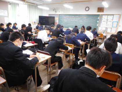 2月21日(木)、来週月曜日から1.2年生は「学年末テスト」です。そのため昨日から「学力補充」の取り組みが始まっています。授業終了後、プラス1時間の授業です。各家庭においても、計画的な学習を進めましょう。
