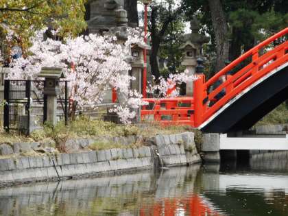 4月4日(木)午前、校内では、新しく来られた教職員が研修中です。寒の戻りの中、地域の桜は? 万代池の桜は6.7分咲き。住吉大社の桜も6.7分咲きですが、反橋(太鼓橋)のたもとの桜は満開。明日からは春らしい陽気になるとの予報。春爛漫の中、入学式を行えそうです