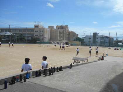 4限目、2年生がグラウンドで体育大会に向けた練習をしていました。今日は、日中も過ごしやすくなったこともあり、授業中でも大きな声であいさつしてくれたり、水分補給の際に意気込みを語ってくれたりしました。