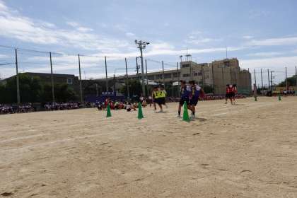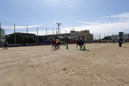 コーンの周りを回る時にそれぞれの工夫があり、練習の成果が発揮できた組もありました。
