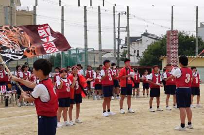 ここで各団の応援合戦を披露する時間が設けられました。3年生の団長、副団長を中心にそれぞれのカラーで盛り上げていました。