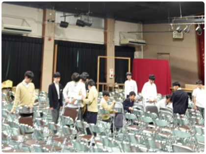 今日は、文化発表会のリハーサルと清掃を含めた準備を行いました。会場設営は2年生。先生からの指示にてきぱきと動く姿や、仲間と協力して作業を進める姿に、頼もしさを感じましたと報告がありました。準備をしてくれた皆さん、ありがとうございました。