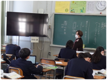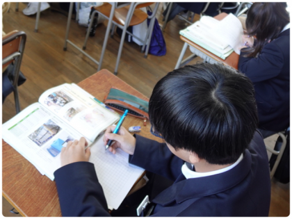3限目、国語の授業では、水の課題に対する解決策に賛成、反対を考え、意見、理由、例などを順序よくまとめる学習をしました。皆さんは、指示されたことを意識してしっかり書くことができていました。
