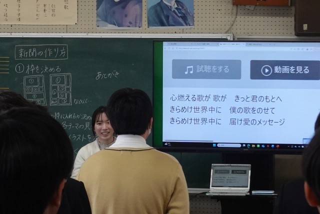 3限目、音楽の授業では、大阪市総合教育センターの先生が見守られる中、交響曲を鑑賞したり、「マイバラード」を歌ったりしました。
