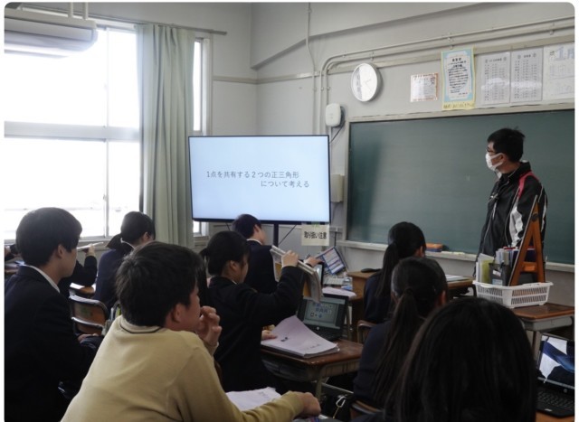 6限目、2年生は「学習者用端末の効果的な活用」をテーマに、数学と技術の研究授業に取り組みました。多くの先生方に見守られる中、意欲的に活動していました。特に、技術では、同じ内容をプロンプトで指示しても、完成する画像がそれぞれ異なることに興味を持ち、AIの特性を実感しながら学んでいました。授業の中で先生が話していたように、AIが作成した内容をそのまま受け取るのではなく、正しいかどうかを確かめ、考える力をこれからも身につけていってほしいと思います。今回の学びを、今後の学習や生活の中でも生かしていきましょう。
