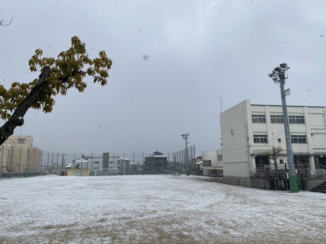 一昨日の降雪により、グラウンドは一面の雪景色となりましたが、今日は寒波もやわらぎ、久しぶりに多くの部活動がグラウンドで練習に励む様子が見られました。長距離を走り込む姿や基礎トレーニングに取り組む姿からは、どの部活動も目標に向かって真剣に努力する気持ちが伝わってきました。