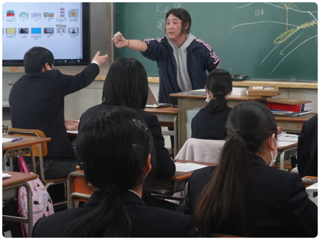 1限目、1年生は、理科の授業で地震と火山の関係について学習していました。映像を通して理解を深める時間もあれば、火山灰や溶岩が冷えて固まったものを実際に手に取り、間近で観察する場面もありました。日本に住む私たちにとって、地震や火山について学ぶことはとても大切です。自然の特徴を知り、日本の良さを改めて感じるとともに、災害に備える力もつけてほしいです。そのためにも一つ一つの授業を大切にし、しっかりと学んでください。